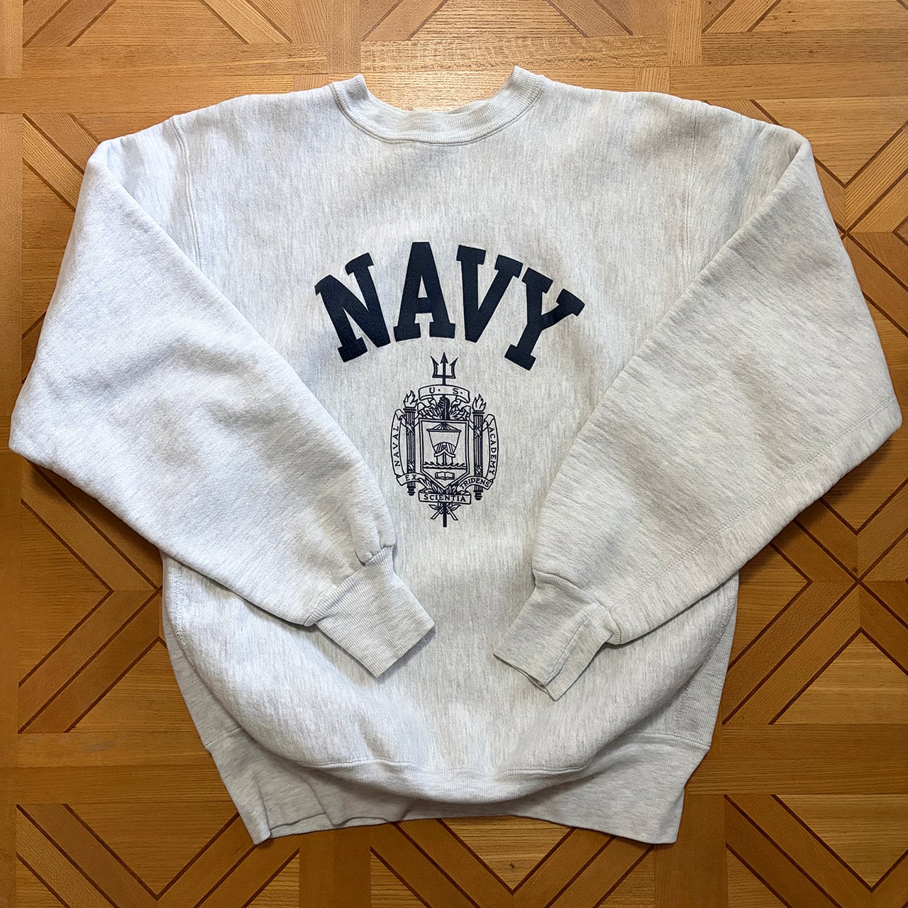 90s US NAVY ACADEMY MVsport Pro Weave Reverse Weave US ネイビーアカデミー MVスポーツ プロウィーブ リバースウィーブ Gray Size M Made in USA 中古